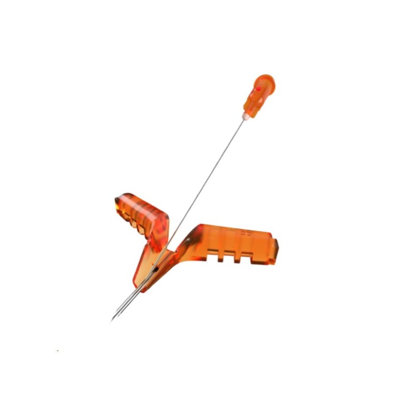 Specjalnie zaprojektowana konstrukcja pół-igły umożliwia dokładne dopasowanie kaniuli do miejsca iniekcji. Zintegrowany korytarz prowadzący ułatwia właściwe ustawienie narzędzia, wspierając większą kontrolę nad przebiegiem procedury i zwiększając precyzję wykonywanych iniekcji.