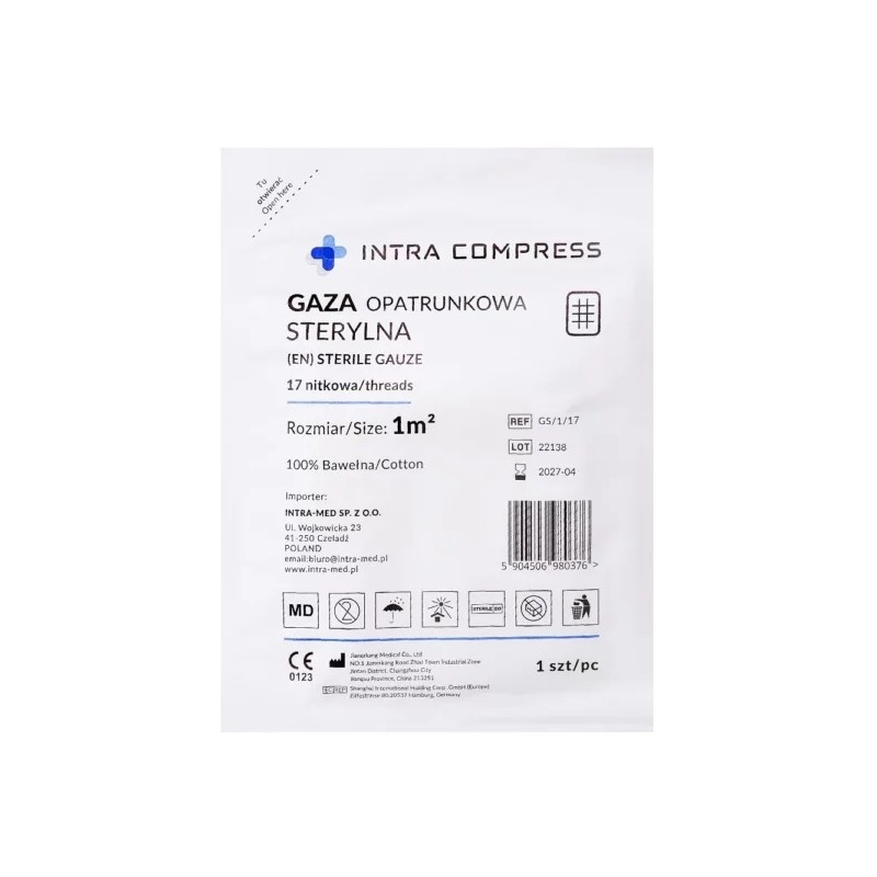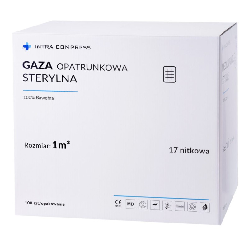 Gaza opatrunkowa 1m2, 17nitkowa INTRA to produkt wykonany ze 100% wysokiej jakości bawełny bielonej metodą bez chlorową.