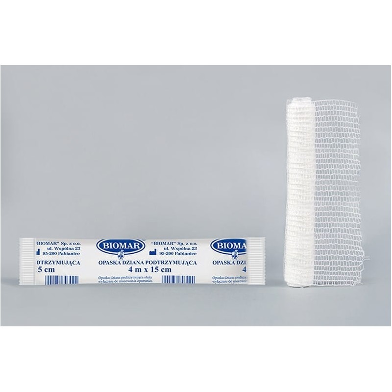 Opaska dziana podtrzymująca w rozmiarze 10cmx4m, indywidualnie pakowana papier powlekany polietylenem. Produkt przeznaczony do stabilizacji i mocowania opatrunków, szyn, przewodów medycznych i łusek ortopedycznych.