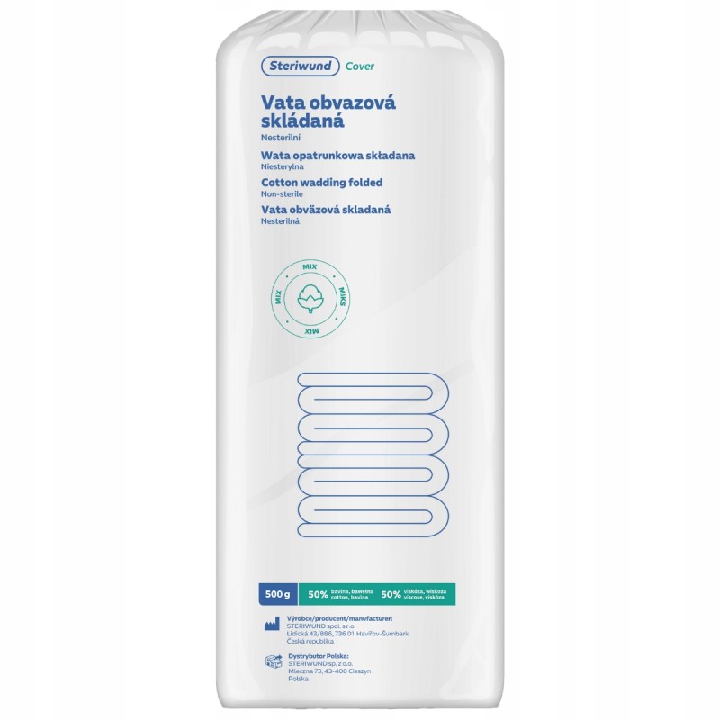 Wata opatrunkowa Steriwund produkowana z mieszaniny bawełny i wiskozy. Jest puszysta i miękka w dotyku, oraz cechuje ją wysoka chłonność. Wata bawełniano-wiskozowa przeznaczona jest do celów kosmetyczno-higienicznych, zapewnia wysoką chłonność i bezpieczeństwo użytkowania. Rolki waty bawełnianej są używane przede wszystkim jako podkład dla opatrunków gipsowych – również w terapii kompresyjnej limfatycznego obrzęku kończyn dolnych.