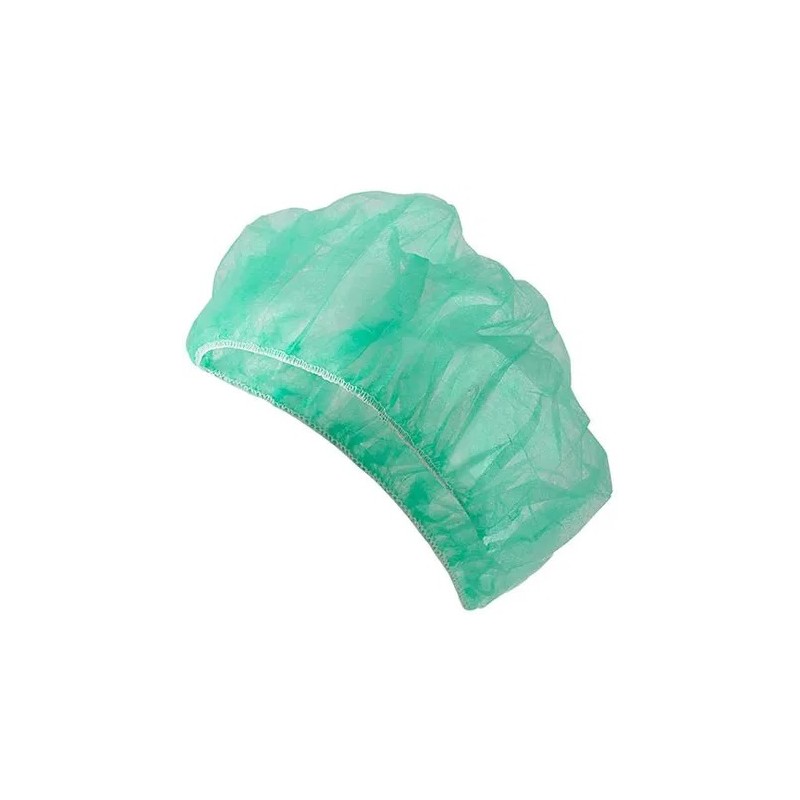 Czepek medyczny z włókniny w kolorze zielonym typu clip/harmonijka. Zapobiega nadmiernej potliwości i zwiększa komfort noszenia dzięki dobrej przepuszczalności. Czepki zakończone są wygodną gumką na całym obwodzie.