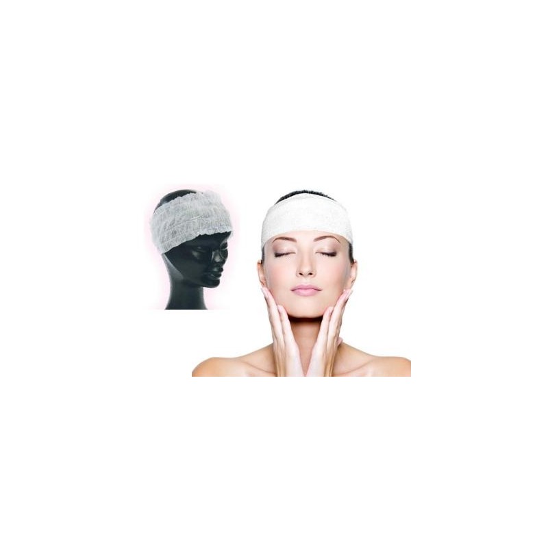 Kosmetyczna opaska na włosy wykonana z włókniny, wzmocniona gumkami.