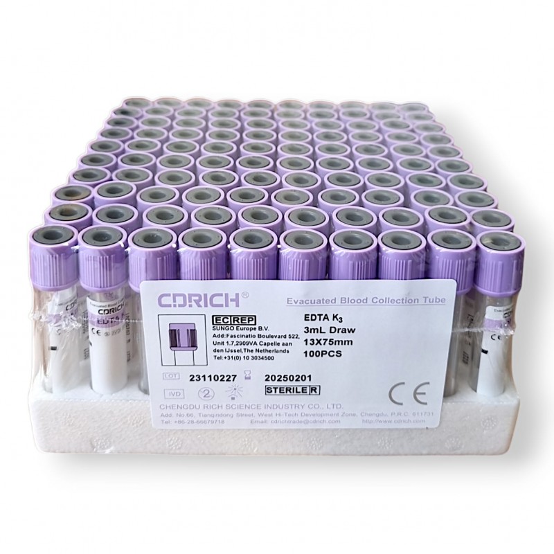 plastik  | 13×75 mm  | 3 ml  | bezpieczny/fioletowy  | papierowa  | EDTA K3  | 100/1000 szt.  |