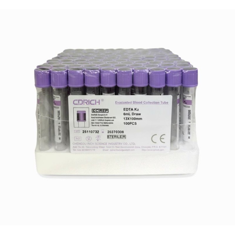 | Plastik | 13x100 mm | 6 ml | Bezpieczny/fioletowy | Papierowa | EDTA K2 | 100/1000 szt. |