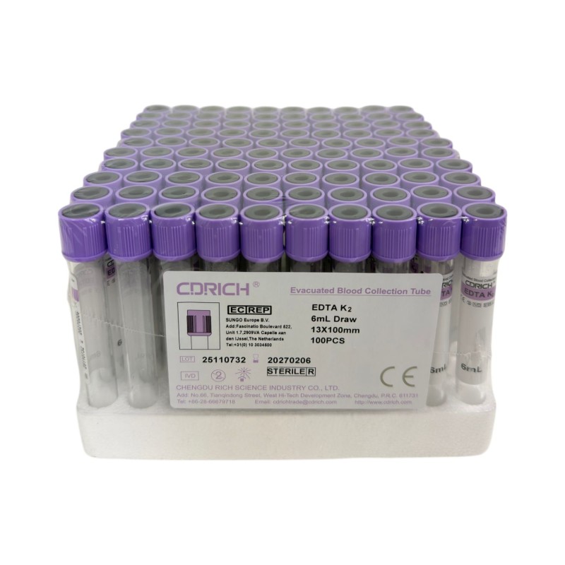 Probówki z EDTA dostarczają wysokiej jakości próbki krwi pełnej do oznaczeń hematologicznych. Sól potasowa EDTA K2 lub K3 jest stosowana jako antykoagulant, który dobrze konserwuje składniki komórkowe krwi. Wewnętrzna ścianka probówki jest pokryta EDTA w postaci sprayu. Próbki z EDTA mogą być stosowane w analizatorach bezpośredniego pobierania próbek bez ich faktycznego otwierania. Rozmaz krwi należy wykonać w ciągu 2 godzin po pobraniu krwi. Ważne jest dobre wymieszanie pobranej krwi w probówce, które przeciwdziała powstaniu niepożądanych skrzepów.