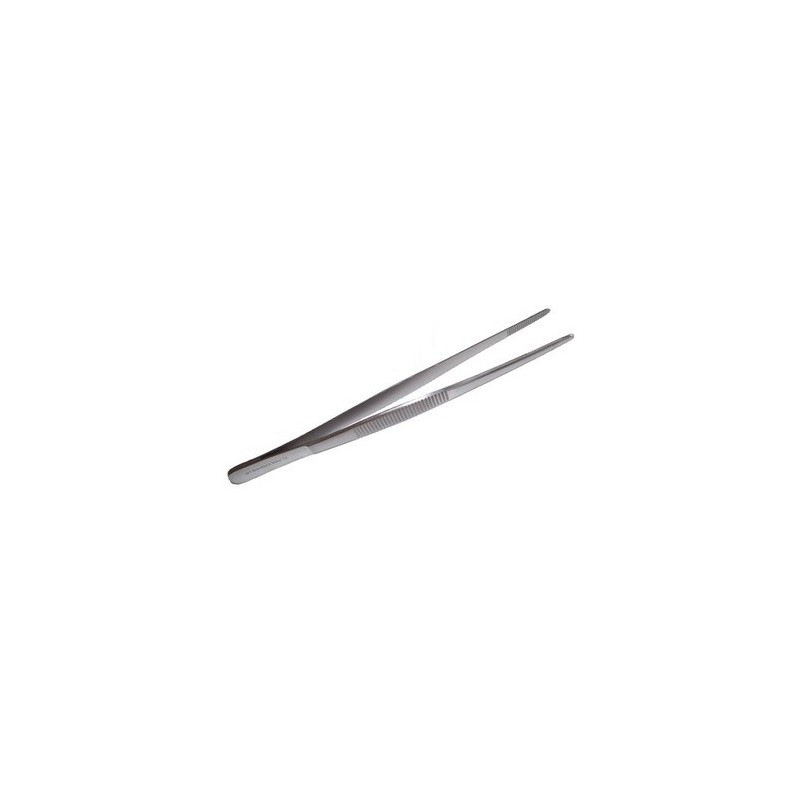 Pinceta wykonana z wysokiej jakości stali chirurgicznej. Przeznaczona do przytrzymywania delikatnych struktur. Nacięcia na końcach zapobiegają miażdżeniu tkanek.