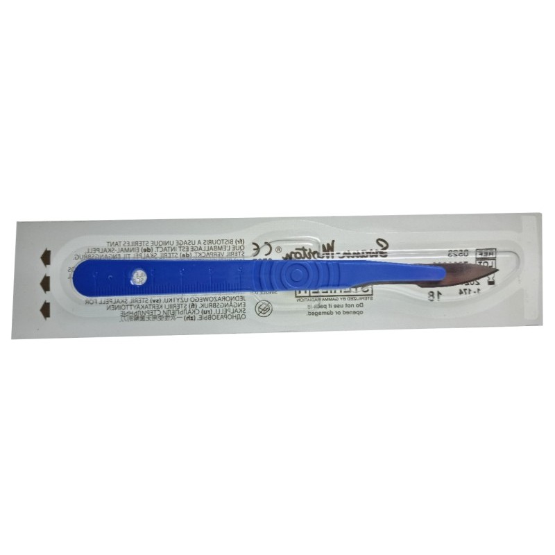 Ostrza z polistyrenową rączką pakowane indywidualnie w opakowaniach termalnych, które zmieniają kolor podczas otwarcia produktu, informując o utracie sterylności.