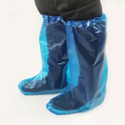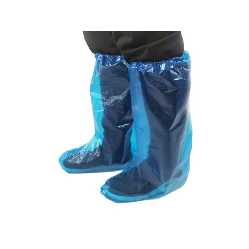 Osłony na buty z folii PE w kolorze niebieskim o długości 48cm i grubości 0,04mm, chroniące przed zachlapaniami w przetwórstwie spożywczym, laboratoriach oraz w służbie zdrowia.