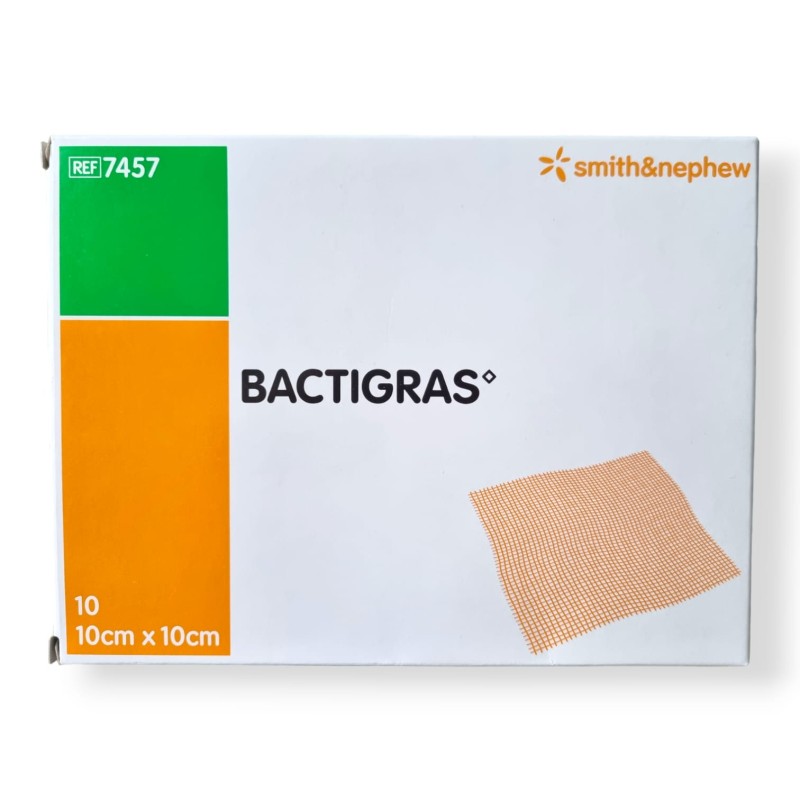 Bactigras - opatrunek z gazy bawełnianej o specjalnym splocie gazejskim, impregnowany białą parafiną miękką, zawierającą 0,5% octanu chlorheksydyny.