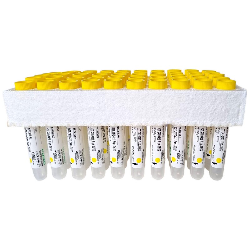 Polipropylen | 13x75 mm | 5ml | bezpieczny/żółty | papierowa | Fluorek potasu | 50szt. |