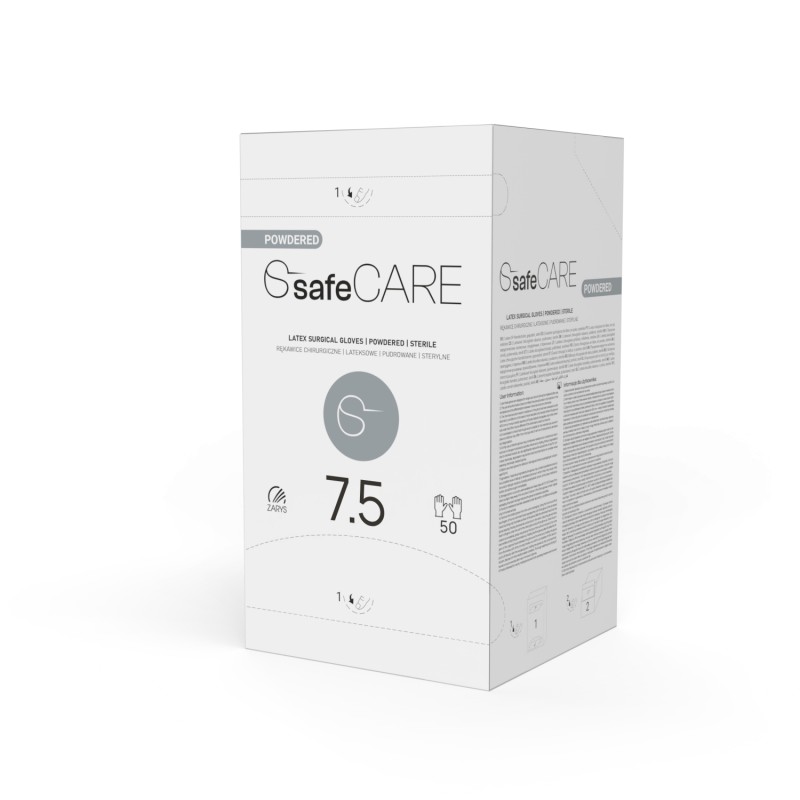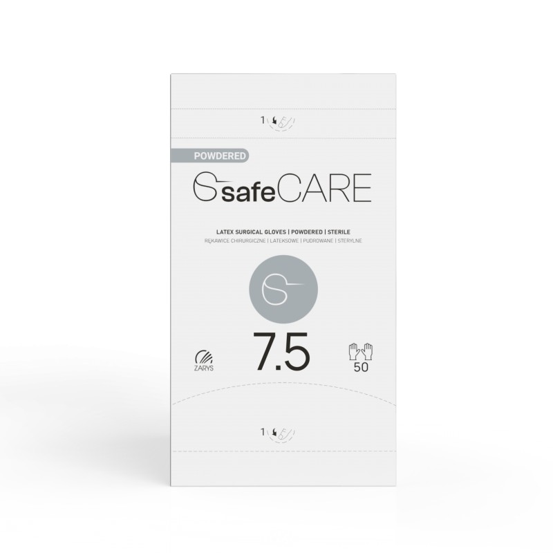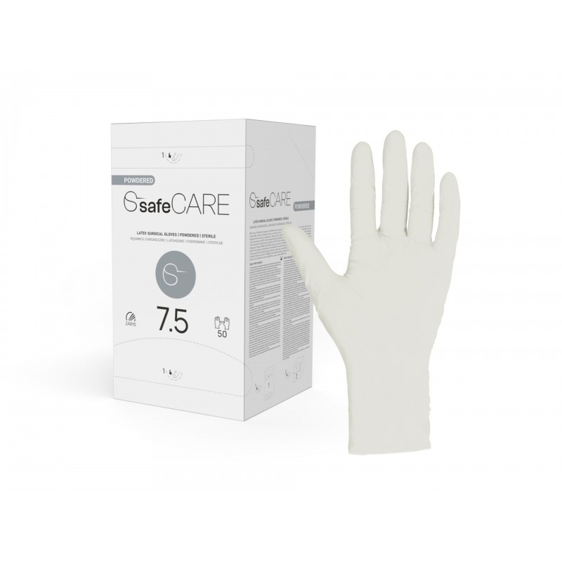 Rękawice chirurgiczne lateksowe SafeCare (rozm.7.5) - pudrowane, jałowe, 1 para