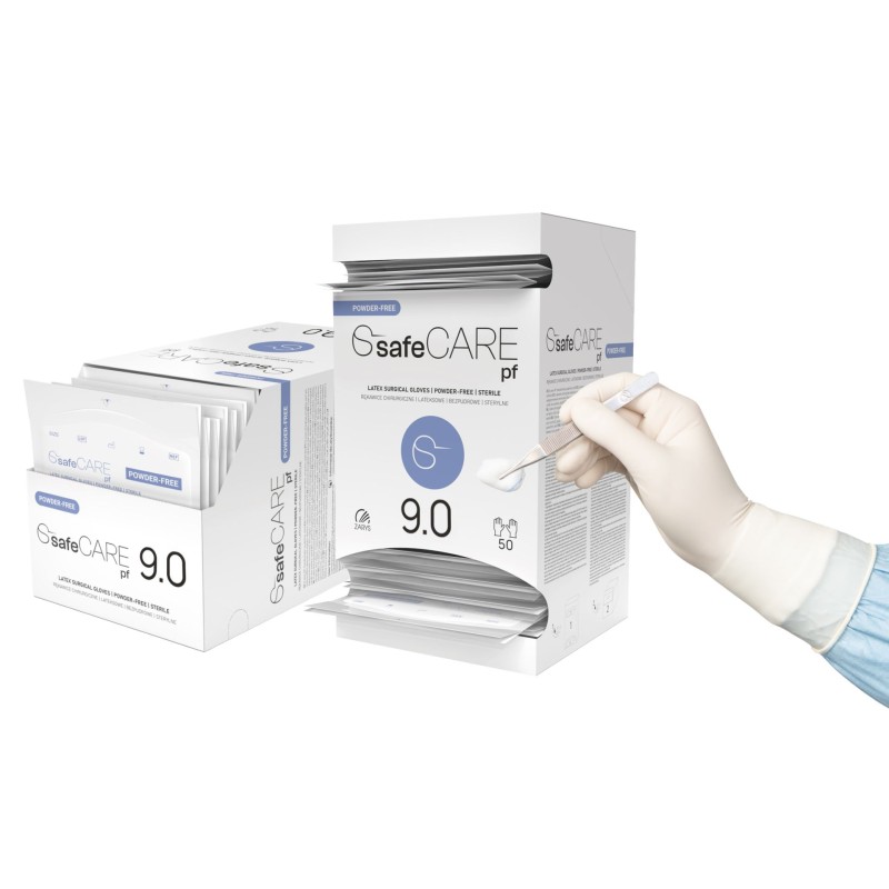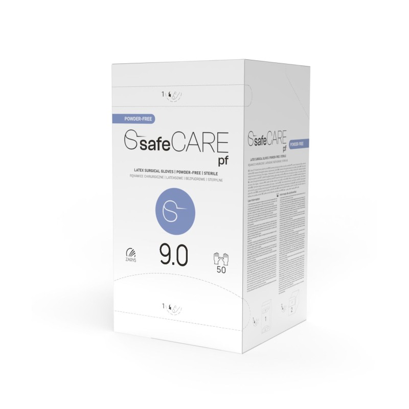 Rękawice chirurgiczne lateksowe SafeCare PF (rozm.9.0) - bezpudrowe, jałowe, 1 para