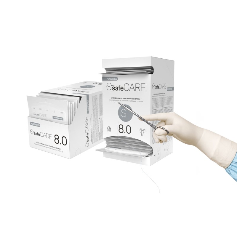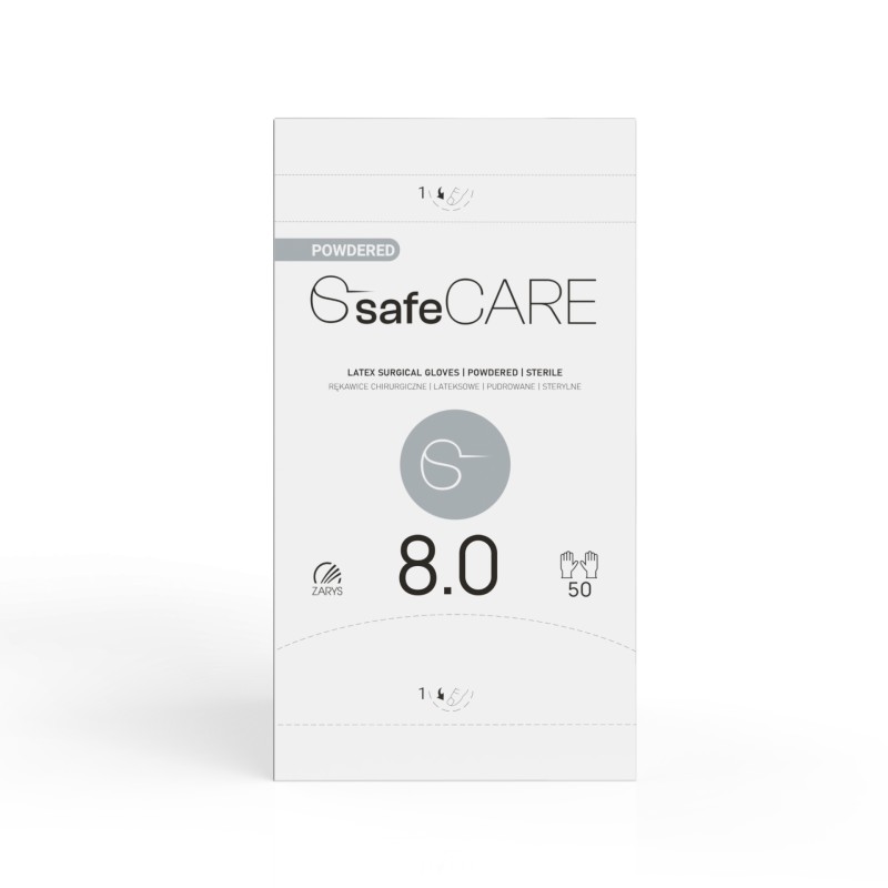 Rękawice chirurgiczne lateksowe SafeCare (rozm.8.0) - pudrowane, jałowe, 1 para