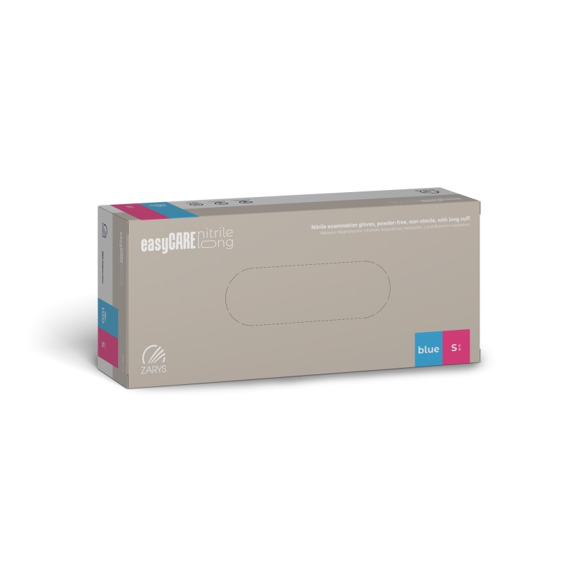 Rękawice nitrylowe bezpudrowe EasyCare Long (Rozm. S), przedłużony mankiet, niebieskie, 100szt./op.