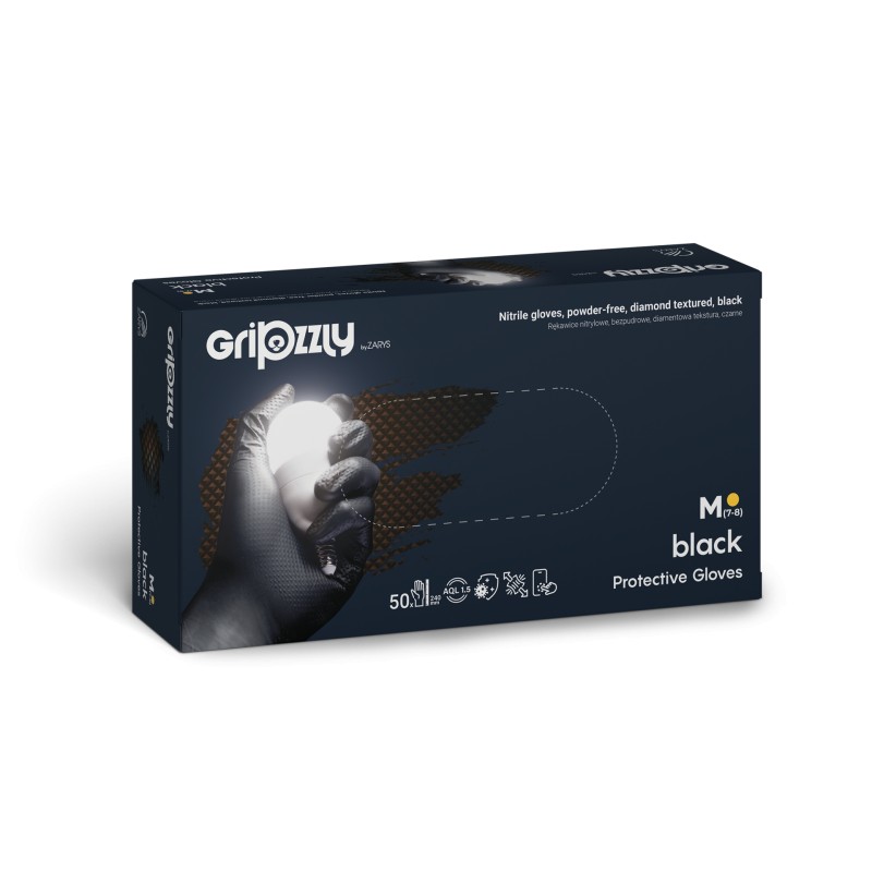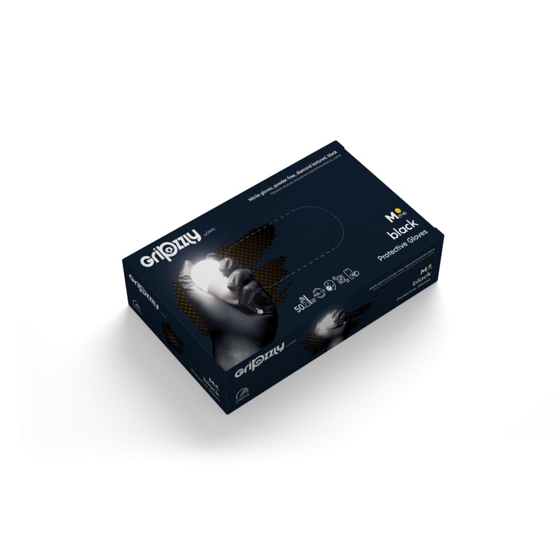 Rękawice nitrylowe PF GRIPZZLY Czarne (Rozm. M), wzmocnione z diamentową teksturą, 50szt./op.
