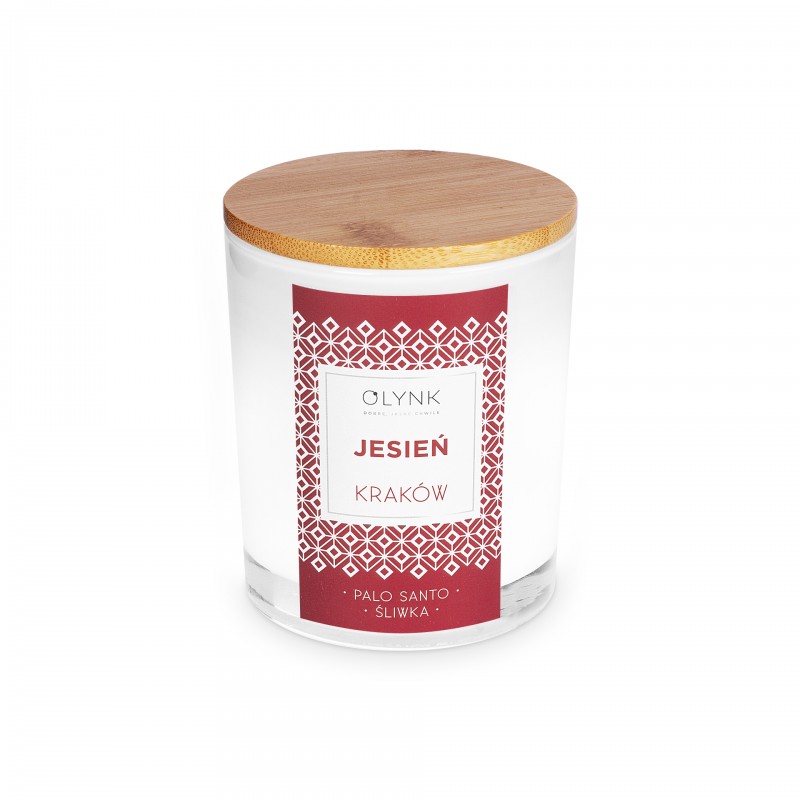 Świeca z wosku sojowego w szkle - JESIEŃ Kraków (palo santo – śliwka), 280ml