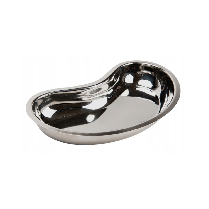 Miska metalowa w kształcie nerki, wykonana z wysokiej klasy stali chirurgicznej. Produkt wielokrotnego użytku, przeznaczony do przechowywania materiałów zużywalnych lub do dezynfekcji narzędzi w gabinetach lekarskich