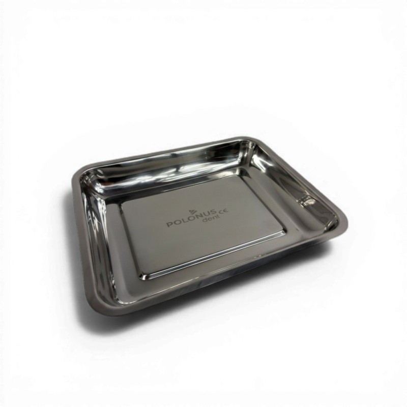 Profesjonalna taca ze stali nierdzewnej na narzędzia chirurgiczne, stomatologiczne oraz kosmetyczne. Prostokątna tacka stomatologiczna metalowa jest produktem codziennego użytku w każdym gabinecie specjalistycznym. Może służyć jako tacka chirurgiczna lub laboratoryjna w gabinetach podologicznych. Posiada gładką powierzchnię, uzyskała certyfikaty jakości CE.