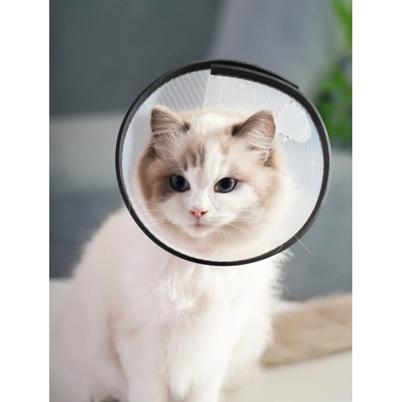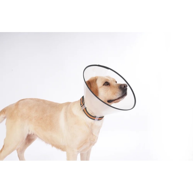 Kołnierz ochronny dla zwierząt, przeznaczony do zabezpieczania ran i szwów przed rozdrapywaniem i lizaniem.