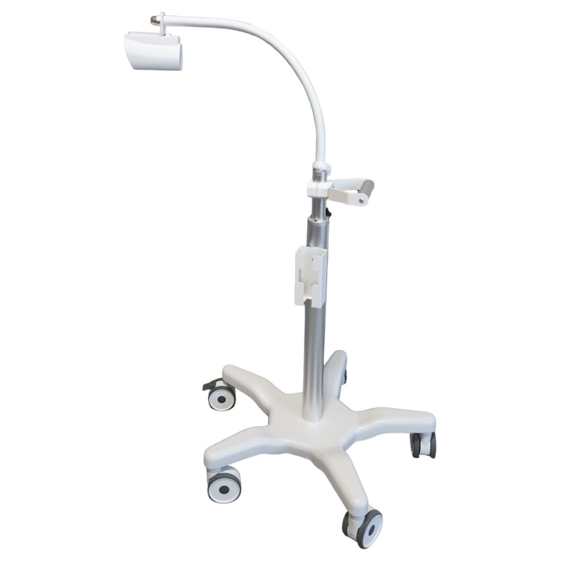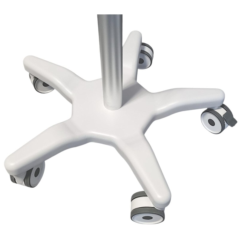 Statyw VS Elite to lekki i kompaktowy statyw podłogowy, zaprojektowany z myślą o zwiększeniu komfortu pracy ze skanerem żył Vivolight. Dzięki mobilnej konstrukcji można go łatwo przestawiać w dowolne miejsce – przy łóżku pacjenta, w gabinecie zabiegowym czy laboratorium. To praktyczne i funkcjonalne rozwiązanie, które ułatwia codzienną pracę personelu medycznego.
